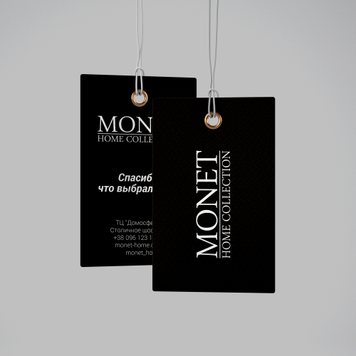 Бирка, дизайн которой разработан индивидуально, должна учитывать корпоративный стиль компании. На этикетке располагают логотип и название бренда, они увеличивают престижность бренда, ассоциируются с люксовым одеждой и серьезностью производителей.
