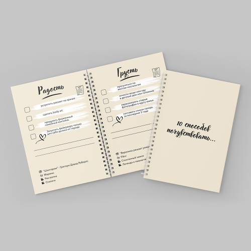 Розробка дизайну блокнота в фірмовому стилі стане відмінним способом підготовки до виставки, конференції. У блокноті можна не тільки зробити важливі записи, він може стати ефективним джерелом реклами.