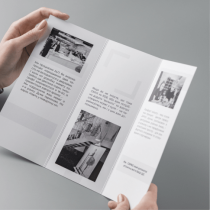 На три складання. Формат підходить для історії бренду, послідовного представлення інформації або каталогу продукції. Гарантує цікаве і динамічне читання, залучає увагу споживача з першого погляду.